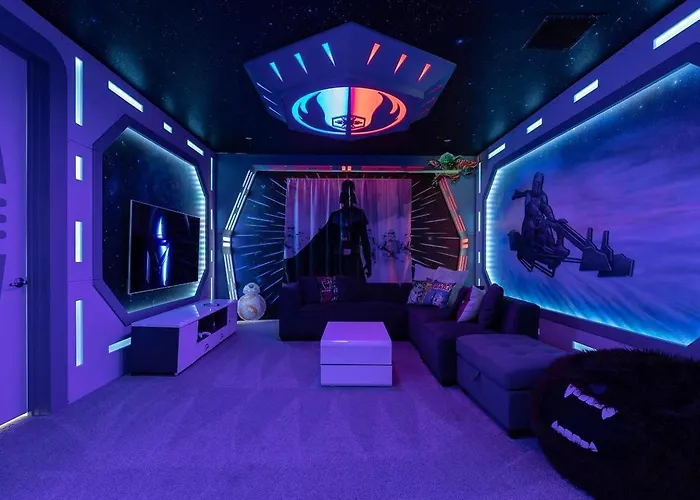 Die Charming 8 Bdrm Villa With Games Room At Encore Orlando bietet einen privaten Swimmingpool zur Entspannung der Gäste und liegt im Viertel Celebration.